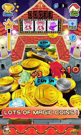 Regeneration begins automaticaly when you have less than 50 coins. Pushing down Magic Coins will make your fortune grow faster. There are 7 types of Magic Coins available to help you start a coin rain, set up a coin wall, or simply get more coins and prizes.