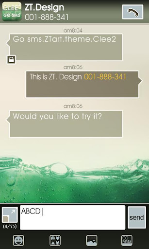 1. Open GO SMS Pro, click Menu>Theme>Installed, choose Clee2 Theme and apply it.